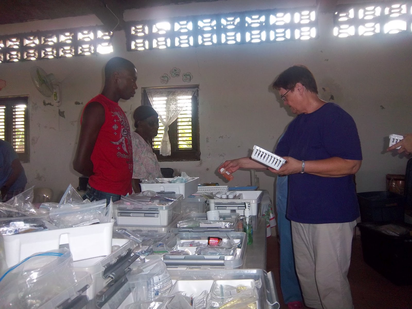 The clinic was truly a TEAM effort. It's neat to see all the different people/ministries who came together for this event. Resurrection Lutheran Church started it by donating the supplies. I knew we could count on our young adult leaders from Iglesia Nueva Jerusalem here in the Dominican Republic to help us run the whole event. Of course, we worked with the pastor of the community and leaders from his church, Iglesia de Dios de la Profecia. The doctors were Diane and Fran Sabado who have their own medical ministry called Corozon del Siervo. Our pharmacy team consisted of three women: two who were visiting from Our Savior's Lutheran Church in Albany (Kaye and Shannon Schmainda), and Sandee Walden from M.O.T.E. here in the Dominican Republic joined us for the day as well. Including me, there were seven different ministries represented!! I think that's cool -- the body of Christ working together to help people in need!